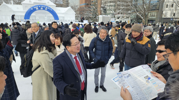 [충청뉴스 김용우 기자] 이장우 대전시장은 4일 제74회 일본 삿포로 눈축제 개막식에 참석해 "겨울은 삿포로 눈축제, 여름은 대전 0시 축제를 많은 이들이 찾기를 바란다”라고 말했다.