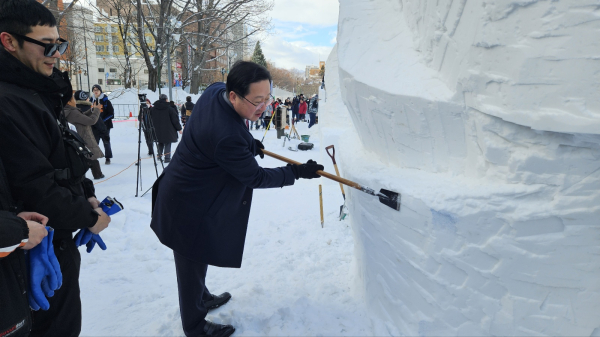 이 시장은 개막식 행사 참석 후 삿포로시 오도리 공원의 1.5㎞ 구간에 조성된 눈축제 행사장을 시찰했다.
