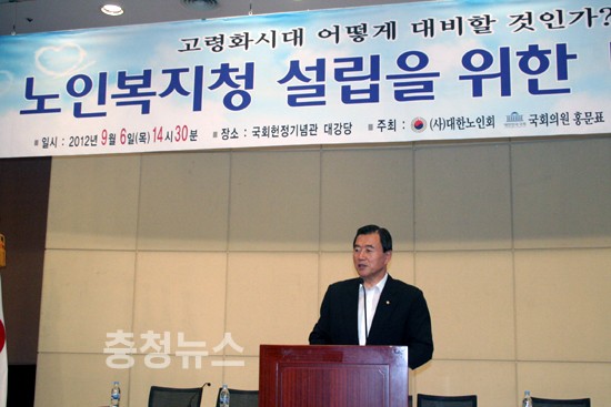 새누리당 홍문표 국회의원이 노인인구 증가에 따른 고령화로 인해 사회적인 대책이 요구되는 가운데, 노인복지사업의 일원화와 일관된 노인복지정책 추진을 위한 대안으로 노인복지청 설립을 위한 대토론회를 개최해 주목된다.