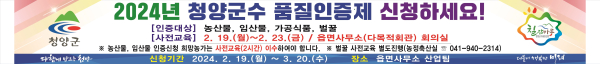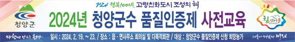 [충청뉴스 권상재 기자] 충남  청양군(군수 김돈곤)이 지역 특산품의 품질 향상과 소비자 신뢰 확보를 위해 올해에도 청양군수 품질 인증제를 추진한다고 7일 밝혔다.