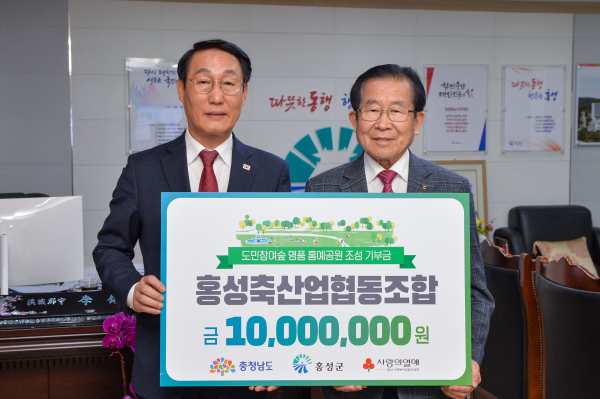 이대영 홍성축협조합장은 “명품 홍예공원 조성의 성공적 추진에 도움이 되기 위해 기탁을 결정했다”며 “홍성과 충남을 넘어 전국에서 많은 방문객들이 찾는 홍예공원이 되길 바란다”고 전했다.