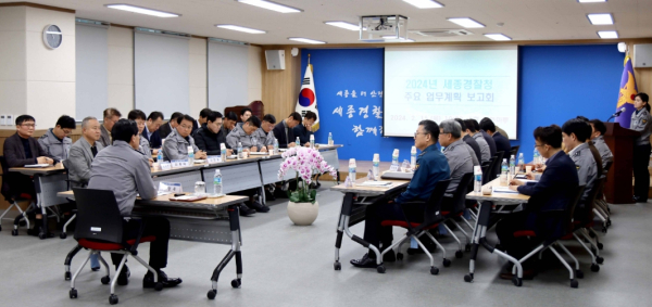 [충청뉴스 최형순 기자] 세종경찰청은 15일 청사 5층 집현마루에서 한형우 청장 및 각 과・계장, 서・단장이 참석한 가운데 ‘2024년 주요 업무계획 보고회’를 개최했다.