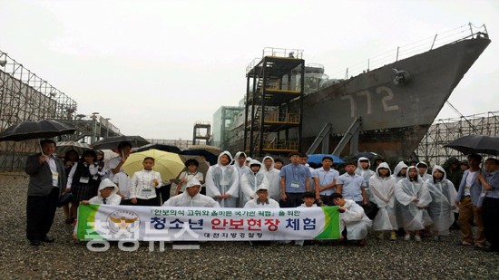 대전지방경찰청 (청장 이상원)은 미래 국가 주역인 청소년들에게 안보현장 체험 기회를 부여, 국가안보의 소중함을 깨우치고 올바른 국가관과 통일관을 정립시키고자 13일 관내 19개 중학교에서 재학중인 청소년 40명을 초청, 평택 해군 제2함대 천안함과 서울 용산 전쟁기념관을 관람하는 안보현장 체험 행사를 가졌다.