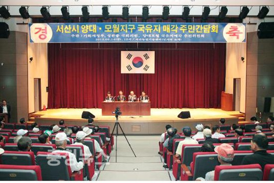 이에 성완종 원내대표는 기획재정부, 자산관리공사 등 관계기관과 서산시, 양대모월주민들이 참석하는 주민설명회를 개최했다.