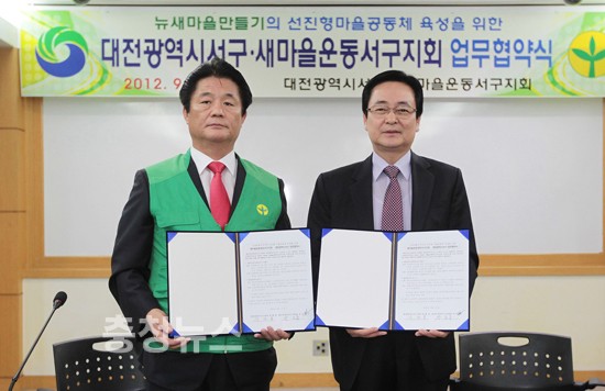 대전광역시 서구(구청장 박환용)는 새마을운동대전서구지회와 17일 서구청 대회의실에서 '뉴새마을 가꾸기'를 위한 업무협약식을 가졌다.
