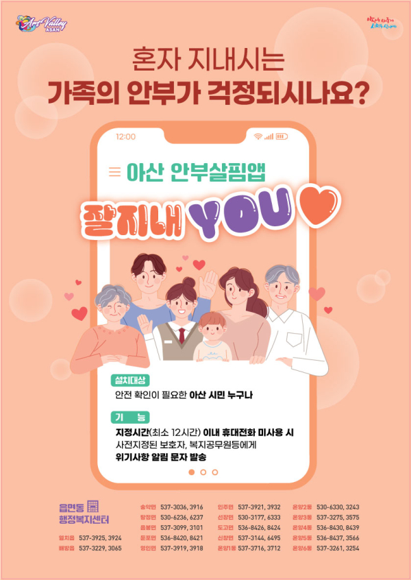 아산, 안부살핌앱 ‘잘지내YOU♥’ 운영