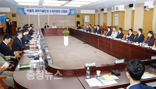 이날 간담회는 지난 2003년부터 현재까지 지역 과학기술 발전에 기여한 공로로 수상한 과학자들의 노고를 위로하고 과학도시 대전의 면모를 더욱 키워 나가는데 필요한 정책적 의견을 수렴하기 위해 마련됐다.