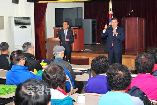 ▲ 대전 중구 박용갑청장은 노인종합체육대회 선수단 찾아 격려했다.