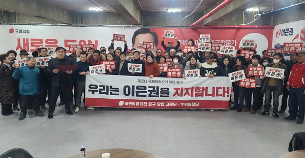 고문단 및 부위원장단은 이날 “이은권 예비후보는 대전 중구가 잃어선 안 될 소중한 자산”이라며 “이 예비후보를 지키고 지원하기 위해 이 자리에 섰다”고 이같이 말했다.
