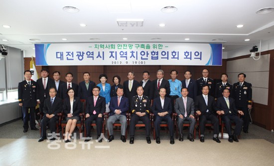 대전지방경찰청(청장 이상원)은 19일 오후 대전지방경찰청 대회의실에서 대전광역시장, 시의회의장, 대전시교육감, 각 기관 및 시민단체 등 유관기관·단체장으로 구성된 2012년도 대전광역시 지역치안협의회 정기회의를 개최했다.