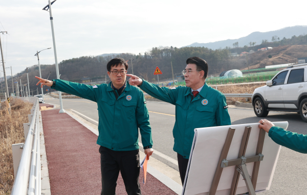 [충청뉴스 계룡 = 조홍기 기자] 이응우 계룡시장이 지난 28일 ‘두마-노성 간 지방도(645호) 확‧포장공사’ 구간 중 엄사면 유동리, 광석리, 도곡리 등 계룡시 구간을 방문해 현장상황을 파악했다.