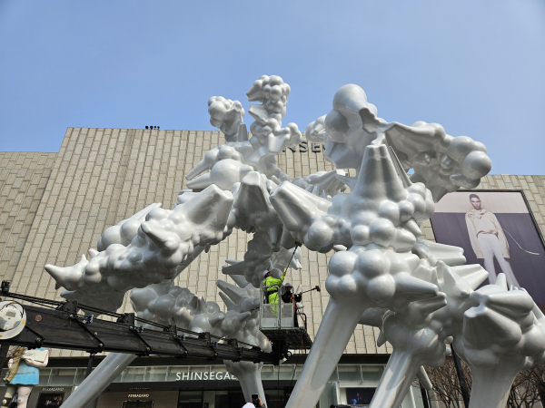 아라리오 관계자는 “외부에 설치된 작품 조건상 눈과 비 그리고 차량에 의해 매연과 먼지 등으로 더러워질 수밖에 없는 조건을 갖고 있다“고 설명했다.
