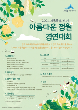 이번 공모전은 정원을 가꾸는 세종시민이라면 누구나 참가할 수 있으며, 참가 접수는 오는 4월 1일부터 30일까지 한 달간 받는다.