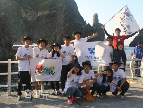 한・중・일 간의 영토와 관련돼 극도의 긴장관계가 유지되고 있는 가운데 배재대학교 아펜젤러대학 학생회(회장 권혁주) 소속 15명이 22일 독도를 방문해 독도 지킴이 활동의지를 다졌다.