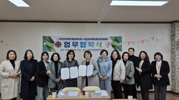 [충청뉴스 서천 = 조홍기 기자] 서천군장애인종합복지관(관장 임향이)은 서천군지역아동센터협의회(회장 손정남)와 지난 5일 장애인복지사업 및 장애인식개선사업을 위한 업무 협약을 체결했다.