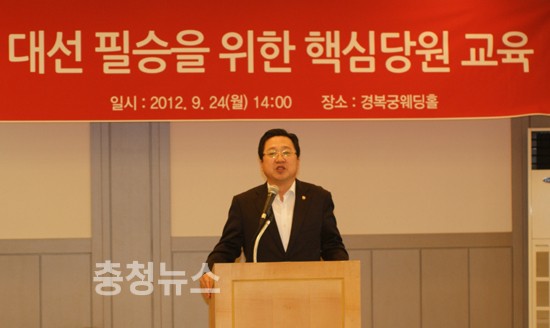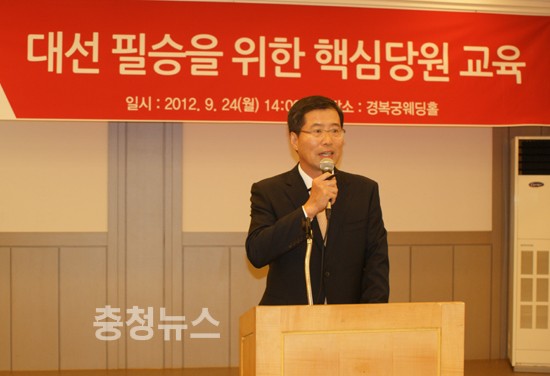 행사에 앞서 핵심당원교육에는 충대겸임교수인 변승환 교수가 '실질적인 SNS 활용법'에 대해, 경희대 법과대 겸임교수이자 법률사무소 전원책 변호사는 '새누리당 대선 승리의 당위성'에 대해 강연했다.