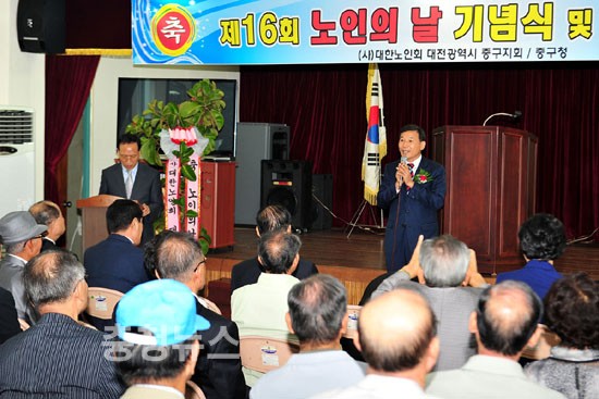 대전광역시 중구(구청장 박용갑)는 26일 대한노인회 중구지회 2층 강당에서 박용갑 중구청장을 비롯한 송난영 대한노인회 대전시 중구지회장과 노인회 회원 등 250여명이 참석한 가운데 제16회 노인의 날 기념행사를 가졌다.