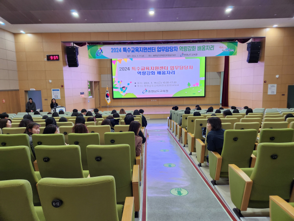 이를 위해 교육청은 15일 특수교육지원센터 업무 담당자 120여 명이 참석한 가운데 ‘2024 특수교육지원센터 업무 담당자 배움자리’를 충남교육청진로융합교육원 가온누리움(대강당)에서 실시했다고 밝혔다.