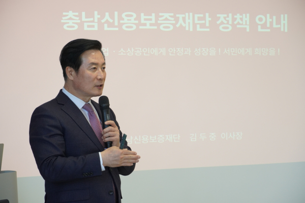 충남신용보증재단 김두중 이사장은 충청남도에 창업 예정인 청년들을 대상으로 재단에 대한 소개와 민선 8기 김태흠 도지사의 저금리 자금 지원 정책에 대해 소개했다.
