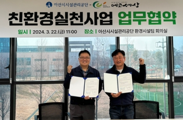 아산시시설관리공단은 22일 에코세상과 지속 가능한 푸른 도시환경 조성을 위한 업무협약을 연장 체결했다/공단 제공