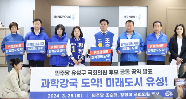 포문을 연 것은 더불어민주당이다. 민주당 조승래(유성갑)·황정아(유성을) 후보는 25일 연구개발특구진흥재단을 찾아 정부의 R&D 예산 삭감 책임론을 제기했다.