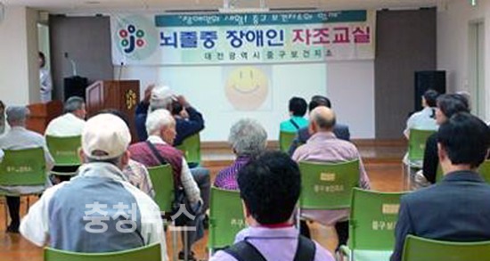 대전광역시 중구(구청장 박용갑)는 4일 중구보건지소에서 장애인 재활보건사업의 일환으로 중구관내 뇌 병변 및 지체장애인들을 대상으로 뇌졸중 장애인 자조교실을 운영해 주민들의 호응을 얻었다.