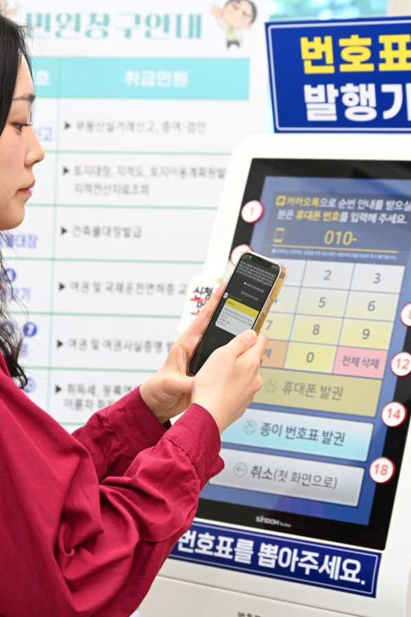 알림톡 서비스는 종합민원실 내 접수 대기자가 키오스크에서 종이 순번표를 발급받는 대신 개인 휴대폰 번호를 입력하면 방문 알림, 대기현황 중간 알림, 호출 알림 등 총 3번에 걸쳐 알림톡을 발송해 주는 시스템으로 카카오톡을 사용하지 못하는 민원인들을 위해 기존의 종이 순번표 발권서비스와 병행 운영한다.