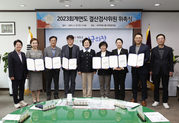 [충청뉴스 박영환 기자] 대전 서구의회(의장 전명자)는 제281회 임시회 의결을 통해 선임된 2023회계연도 결산검사위원 6명을 위촉하고, 27일 의장실에서 위촉장을 수여했다고 전했다.