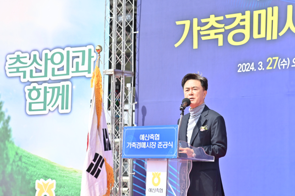 김 지사는 도내 최초의 스마트가축경매시장 준공을 축하하고 “예산축협 가축경매시장이 스마트전자경매 시스템을 갖춰 혈통부터 접종 이력까지 모든 걸 스마트폰으로 보여주고 심지어 집에서 보고 골라 곧바로 데려갈 수 있다”라면서 “앞으로 예산축협 가축경매시장은 한우 생축 거래의 거점으로서 중추적인 역할을 할 것”이라고 말했다.