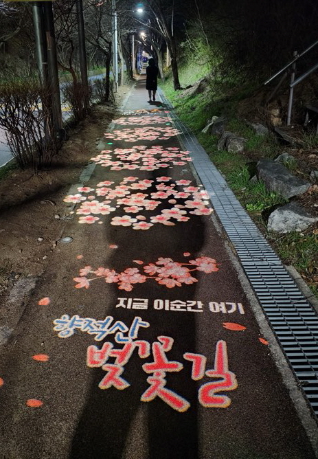 향적산 벚꽃길은 향적산의 매력과 함께 끝없이 펼쳐지는 벚꽃의 아름다움을 즐기기 위해 야간에도 시민들이 많이 찾는 산책길로 경관조명을 통해 볼거리와 힐링의 쉼 공간을 제공하게 됐다.