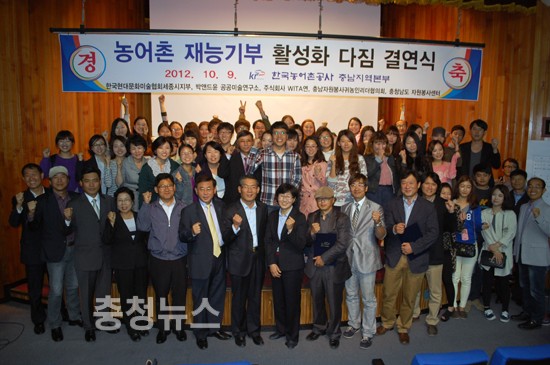 이날 다짐결연식으로 한국농어촌공사와 충남지역 재능기부단체는 농어촌마을의 숨은 가능성을 발굴하고 농어촌재능기부 사회공헌활동이 농어촌 지역으로 더욱 확산될 수 있도록 적극 협력해 나가기로 했다.