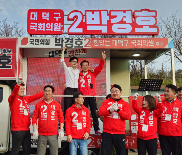 그리고 “이번 선거는 박경호 후보가 인생을 걸고 준비한 선거다”라고 말하며 “나와 박경호가 대덕구민의 편에 서서 맨 앞에서 싸우겠다. 바람 맞고, 화살 맞으면서 끝까지 싸워서 이기겠다”고 말했다.