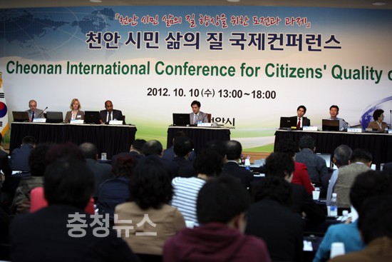 천안시가 시민 삶의 질을 세계 도시 수준으로 높이기 위해 외국의 유명 석학과 국내 전문가 등이 참여한 가운데 경험과 의견을 나누는 자리가 마련됐다.