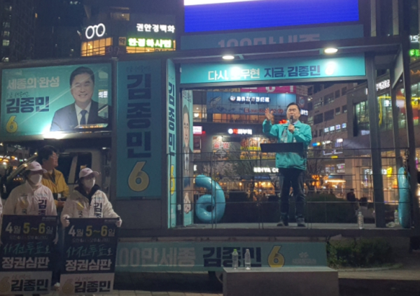 [충청뉴스 최형순 기자] 새로운미래 김종민 세종갑 국회의원 후보는 사전투표를 하루 앞둔 4일 오후 나성동 현대차사거리 일대에서 집중 유세를 열었다.
