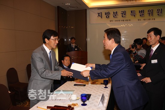 위원장은 안희정 지사와 이기우 인하대 법학대학원장이 지난 7월 공동 선임되고, 위원으로는 염홍철 대전시장과 강운태 광주시장, 김관용 경부도지사, 안성호 대전대 교수 등 11명이 활동한다.