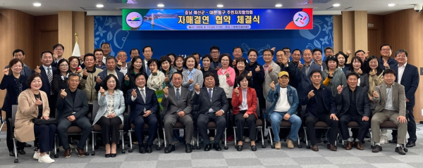 [충청뉴스 박영환 기자] 대전 동구 주민자치위원회(협의회장 이보출)는 12일 충남 예산군청에서 예산군 주민자치협의회(협의회장 윤신구)와 상호발전을 위한 자매결연 협약식을 개최했다.