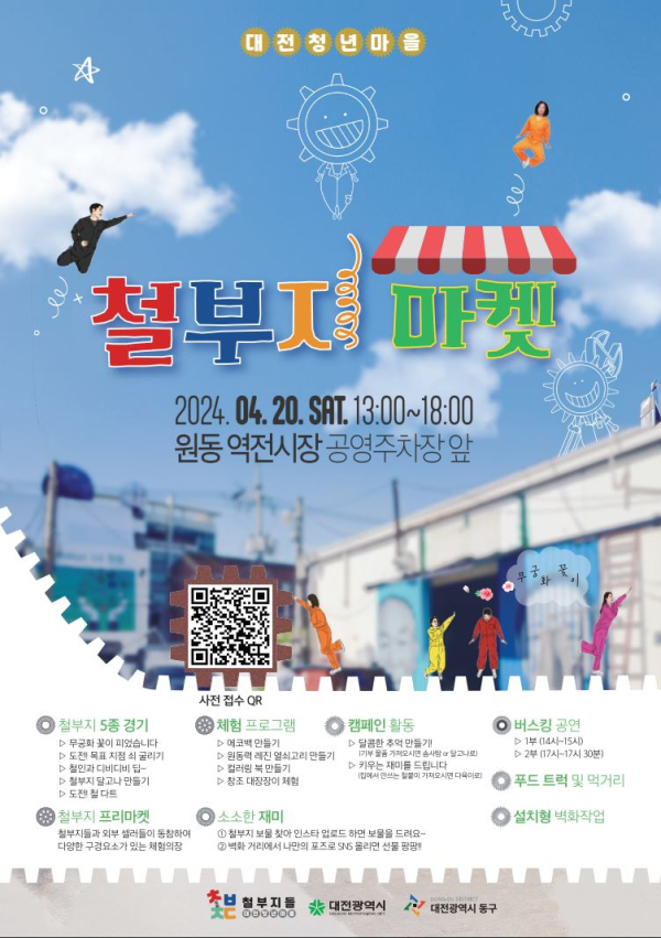 철부지마켓은 원동 철공소길을 살리고, 지역 문화예술 창작자들의 꿈을 펼치기 위해 대전청년마을에 입주한 청년들의 아이디어로 열리는 벼룩시장(플리마켓)이다.
