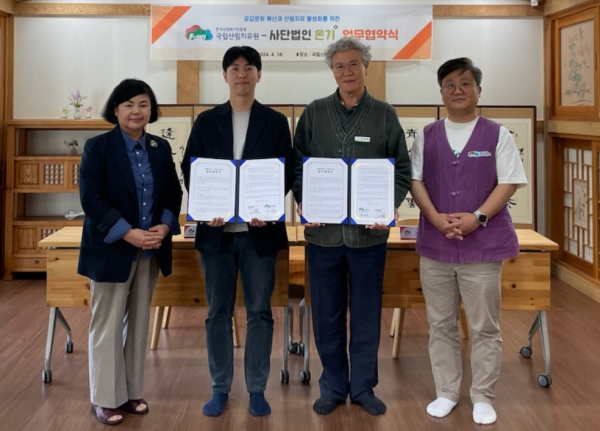 [충청뉴스 최형순 기자] 산림청 한국산림복지진흥원 국립산림치유원(원장 권영록) 18일 국립산림치유원에서 사단법인 ‘온기’와 마음 돌봄 서비스 접목을 통해 고품질 산림치유서비스를 제공하고자 업무협약을 체결했다고 밝혔다.