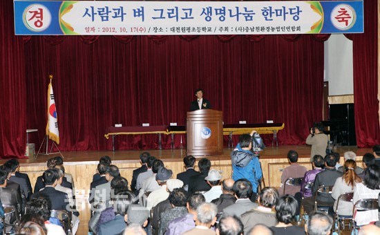 충남친환경농업인연합회(회장 주형로) 주관으로 열린 이날 행사는 감사패 수여, 학교농장 그림대회 및 학교농장 사진 콘테스트 표창, 학교급식 납품 협약 등이 진행됐다.