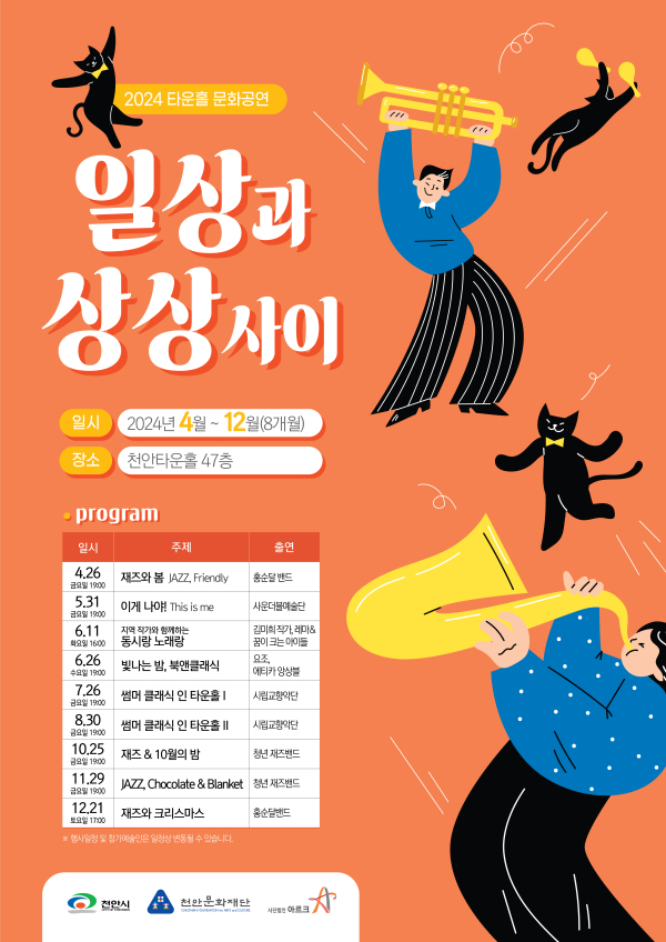 7~8월에는 '천안시립교향악단'의 클래식 앙상블, 10~12월에는 '청년 밴드'와 '홍순달 밴드'의 재즈 공연이 펼쳐진다.