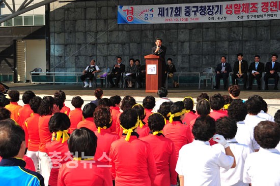 대전광역시 중구(구청장 박용갑)는 19일 ‘제17회 중구청장기 생활체조 대회’를 대흥동 소재 우리들공원에서 350여 생활체조 동호인들이 참석한 가운데 개최했다.