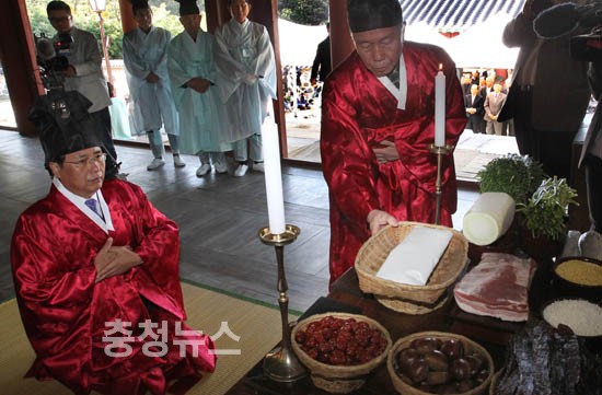 이날 제향에는 한현택 동구청장이 초헌관(初獻官)을 맡아 지역 유림 대표들과 함께 제향을 봉행했다. 초헌관이란 맨 처음 의식 때 술을 올리는 제관으로, 보통 고을의 원님이 맡는다.