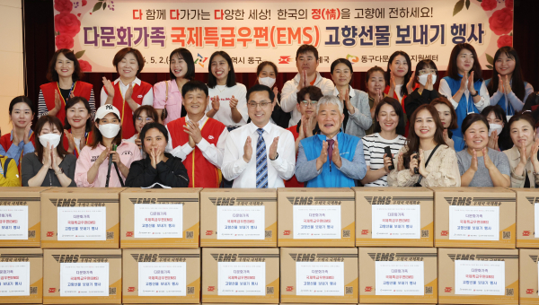 [충청뉴스 박영환 기자] 대전 동구(구청장 박희조)는 2일 대전우체국에서 다문화가족이 모국의 가족, 친지들에게 보내는 물품의 ‘국제특급우편요금’을 지원하는 행사를 개최했다.
