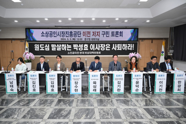 [충청뉴스 박영환 기자] 지난 2일 중구청 대회의실에서 소상공인시장진흥공단(이하 소진공)의 유성구 사옥 이전을 저지하기 위한 구민 토론회가 '소진공 이전 저지 투쟁위원회' 주관으로 개최됐다.