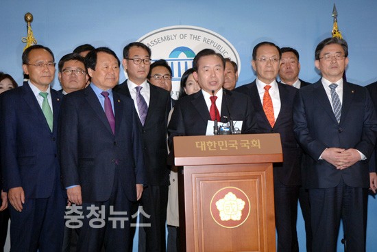 새누리당 황우여 대표는 "건전한 가치관과 정체성을 공유해 온 우리 두 당이 하나가 되어 시대의 소명에 부응하고 국민 여망을 받들기로 결정했다"며 "두 당은 통합을 통하여 당의 혁신과 정치개혁을 강력히 추진할 것"이라고 밝혔다.