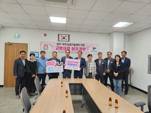 부여군농업기술센터는 지난 8일 공주시농업기술센터 농업회관 회의실에서 양·시군 소장, 과장들이 참석한 가운데 고향사랑기부제 협약식을 통해 기부금 200만 원을 상호 기부했다고 밝혔다.
