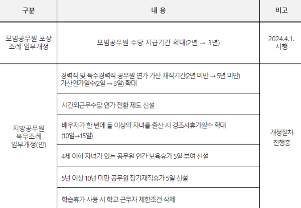 저경력 공무원의 출산, 육아 관련 복지 대폭 개선