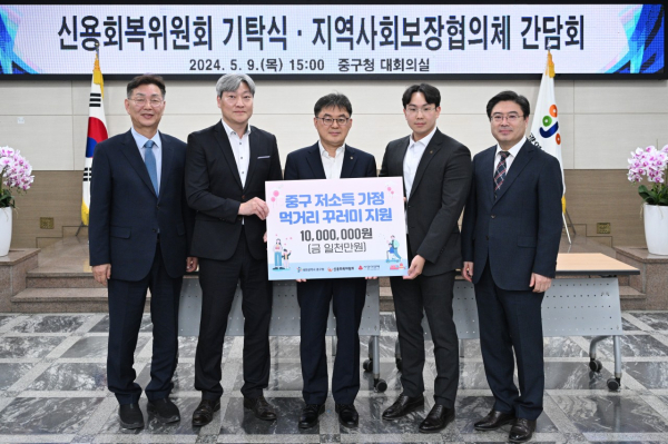 김제선 중구청장은 “중구의 고독사 위험 1인 가구를 위한 신용회복위원회의 소중한 기부에 감사드리며, 앞으로도 중구 지역사회보장협의체를 통한 복지사각지대 1인 가구들을 적극 발굴 지원하도록 노력하겠다”고 답했다.