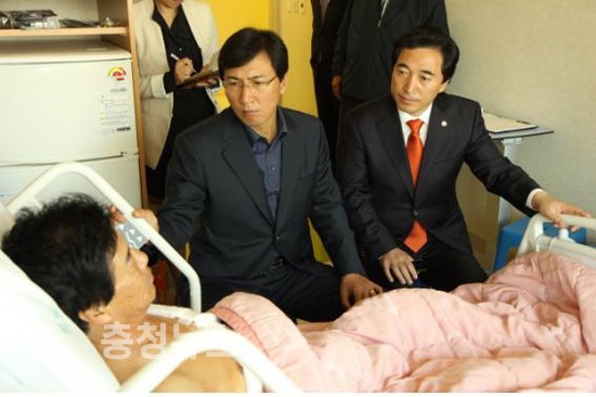 민주통합당 박수현 국회의원(공주시)은 26일 안희정 충남도지사와 함께 전날 ‘삼성 규탄 집회’ 도중 자해를 시도한 서해안유류피해민총연합회 국응복 회장 병문안에서 “29일 열리는 특위에서 피해주민들이 원하는 답을 얻기 위해 최선을 다하겠다”고 다짐했다.