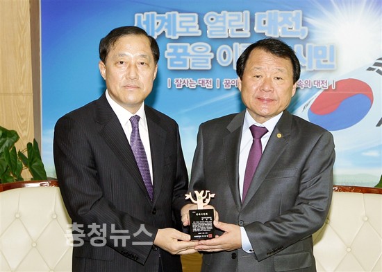 염홍철 대전시장은 29일 오전 시청에서 명예시민패를 전달하고, 대전과의 인연을 계속 이어가 대전발전의 든든한 후원자로서 역할을 당부했다.